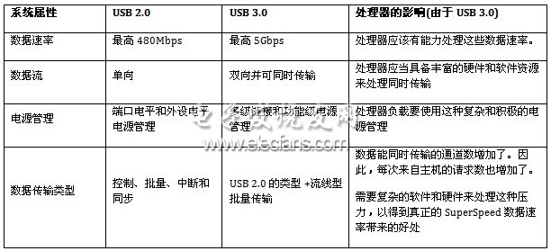在一个普通的场景中,在device端,处理器直接连接到USB、存储器和外设。记住这种结构,由High-Speed过渡到SuperSpeed,处理器的影响可以概括如下: