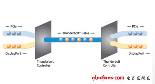 Thunderbolt连接技术融合融合了PCI Express数据传输技术和DisplayPort显示技术,