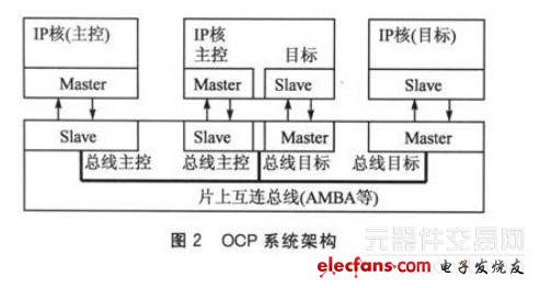 OCP(Open Core Protoco1)标准是OCP-IP组织制定的一种以提高IP核的复用及实现IP核的即插即用为目的的IP核标准。SoC芯片设计不再是门级的设计,而是IP核复用及其接口的设计。IP核要集成到一个SoC系统中,要考虑很多问题,例如:模块间的同步,如全局执行、数据交换的同步操作等;协议转换匹配,不同IP核模块间可能使用不同的协议,这样必须考虑协议转换的问题。这些问题给IP复用带来了一定的难度,并使SoC芯片的time-to-market (上市时间)延长。为解决这些问题,一些大公司提出了自己的总线接口标准,如ARM的AMBA总线、IBM的CoreConnect总线、Altera的 Avalon总线等。因为核的多样性,使用完全相同的总线接口是不现实的。这就意味着,如果总线A上的一个IP核要移植到另一系统的总线B上,就需要更改此IP的接口以及数据交换的方式。如果设计者不了解总线B的数据交换协议,这样就对SoC系统的开发带来一系列困难。OCP-IP正是针对这些问题提出的。OCP协议是免费的,独立于具体的总线。它将软件中的分层概念应用到IP核接口,提供一种具有通用结构定义、可扩展的接口协议,能完全满足IP内核通信机制的所有要求,方便了IP核与系统的集成。