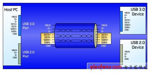 图1:修订后的USB 3.0协议增加了一条双单工数据通道。