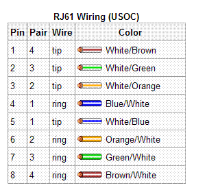 还有一种8P8C连接器称为RJ61,用于连接双绞线对,线序如下: