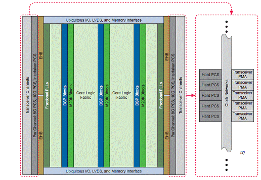 图1。Stratix V GT/GX/GS FPGA芯片图