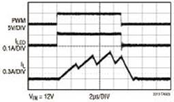 图2 集成的PWM调光在20Hz时实现1000:1的调光