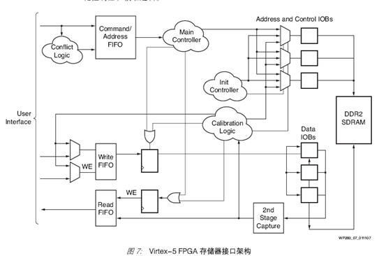 用于地址、控制和数据的物理层接口在 I/O 模块 (IOB) 中实现。读数据在锁存器的第二级(也是 IOB 的一部分)重新采集。