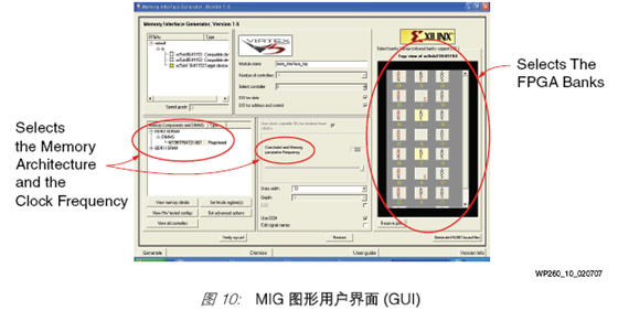 此设计的其他方面包括整体控制器状态机的逻辑生成和用户接口。为了使设计人员更容易完成整个设计,Xilinx 开发了存储器接口生成器 (MIG) 工具。