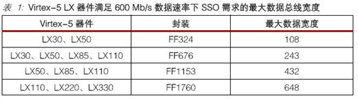 表1 列出了 Virtex-5 LX 器件和满足 600 Mb/s 数据速率下的 SSO 需求的最大数据总线宽度。