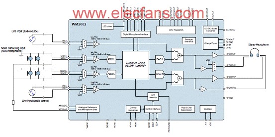 公司的WM2002是采用Wolfson myZoneTM环境噪音消(ANC)除技术的立体声耳机