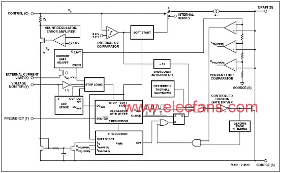 图1.TOP264-271功能方框图 (E和V封装).