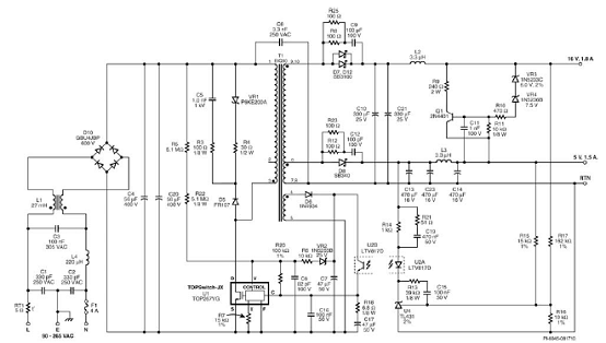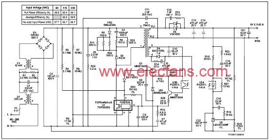 图2.TOP264-271高效19V 65W通用输入反激电路图