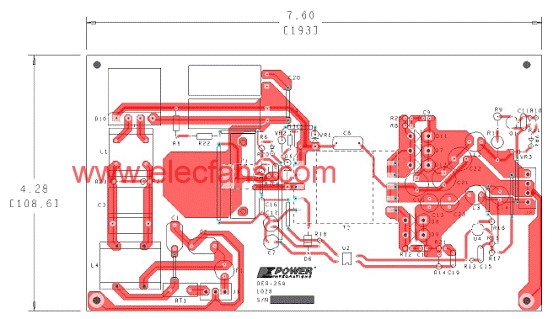 图5.薄型36.3W LCD监视器电源PCB布局图