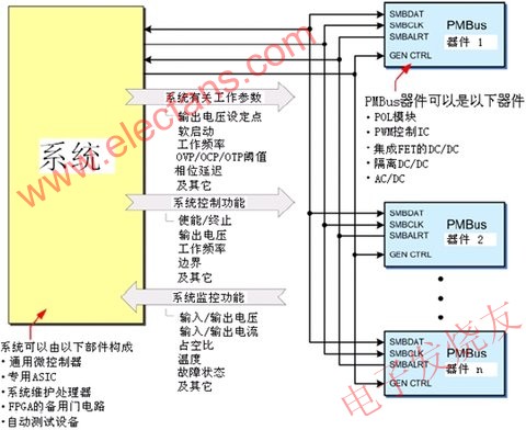 PM Bus是属于系统管理实施论坛(System Implementers Forum:SM-IF)的一个开放性标准,用于定义功率集成电路,所有类型的功率变换电路(例如AC/DC,隔离的DC/DC,非隔离的点负载(POL)变换器和微处理器供电的变换器等)之间相互通信的一种开放性通信协议。