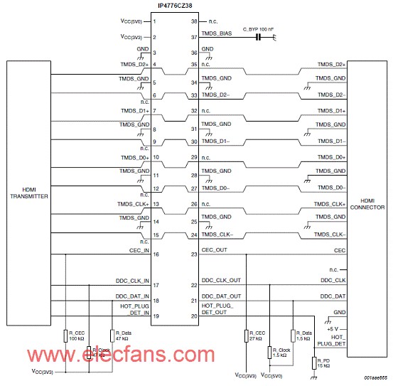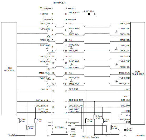 The IP4776CZ38 is designed for HDMI receiver and transmitter port protection, level