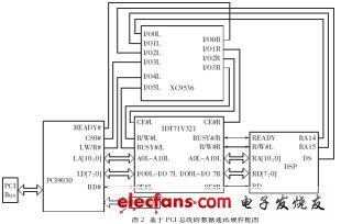 本数据传输系统使用PLX公司的PCI 9030总线接口芯片,以CPLD完成逻辑控制及与外设的连接,整个系统的硬件框图如图 2。其中双端口RAM采用IDT71V321,CPLD选用XILINX公司的XC9536CPLD芯片,EEPROM选用NS公司的93CS56,控制单元DSP选用TMS 320LF2407A。