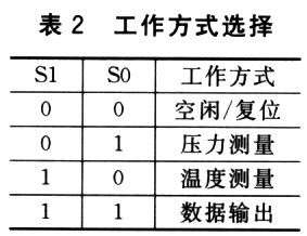 MPXY8020A有4种工作方式,其工作于哪种工作方式由S1和S0引脚的电平来决定,如表2所列。只要VDD引脚有足够的供电电压,不管MPXY8020A工作于何种工作方式,其内部的多路开关、D/A寄存器、低频振荡器和输出脉冲分频器都处于激活状态。需要注意的是,无论MPXY8020A工作于气压采样方式还是温度采样方式,所有的EEPROM位都处于激活状态。如果为了节能而把VDD引脚置为低电平,有必要把所有引脚的电平都置为低电平,以免MPXY8020A被误激活。