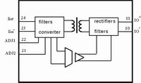 IDC3516是单片两线制隔离接口芯片,该芯片内部包含一个电流信号调制电路,磁电耦合隔离变换电路及解调电路,通过磁路耦合,使能量从输入线传递到输出侧,同时不需要直接电的连接。IDC3516非线性度典型值为0.2%,温漂系数为100ppm,适合于绝大多数工业控制、测量场合。该芯片输入信号为4~20mA,经过隔离后输出4~20mA信号。该芯片的输入等效电阻小,线性度高,并具有很宽的输入/输出爬电距离,图1是IDC3516的内部原理图。其中,引脚24为输入电流信号流入端,引脚23为输入电流信号流出端,引脚22、21分别为零点及满度调节电位器接入端,引脚11、10为输出电流流出、流入端。