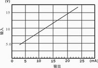 由于在信号传输中,芯片内部需要消耗一部分能量,因此,该芯片的输出信号功率总是要小于输入功率,具体体现在输入端的电压降上。图3是该芯片输入特性曲线,其输出侧所带负载为250Ω,可见在这种情况下,信号源需要有足够的驱动能力(>14V)。