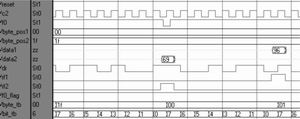 图3 ST-BUS收发模块综合后的时序仿真结果(C2时钟为10MHz)