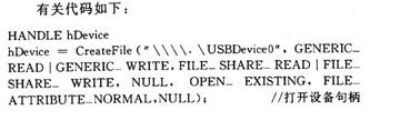 应用程序为打开一个WDM设备驱动程序,使用CreateFile()函数。他的第一个参数是一个符号链接名。如果用DriverWorks创建一个WDM驱动程序,通常会用类KUnitizedName生成一个设备符号链接名。这名字的后面有一个数字,一般是一个o。例如,若符号链接名为"USBDevice",则传递给CreateFile()的是"\\\\.\\USBDevice0"。