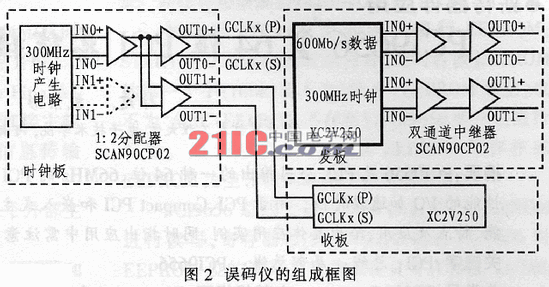 信号为LVPECL电平,经SCAN90CP02转换成2路LVDS电平,分别送往误码仪的发板和收板。