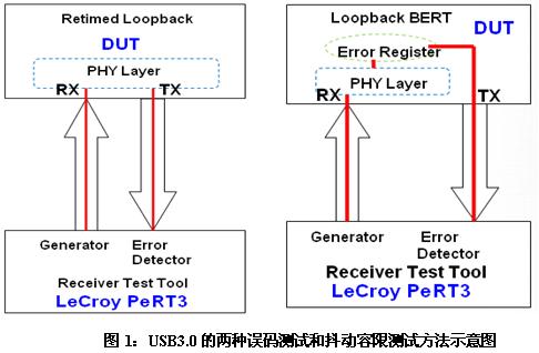 由于USB3.0的速率高达5Gbps,在USB3.0规范中接收机测试成为必测项目。接收机测试包括了误码率测试和接收机抖动容限测试两部分。