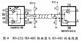ESD保护器件,因此,适合于长线室外使用。图4是RS-232/RS-485转换器与RS-485的连线图。