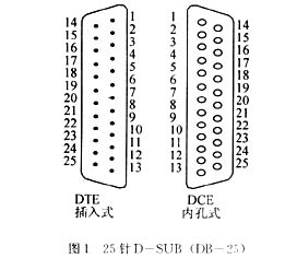 最初的RS—232标准没有推荐连接器,目前新的标准配置的连接器类型是一个25针的D-sub 连接器。这个连接器的外壳和一个大写字母D的外形相似,它可以确定插接连接器时的方向 。导线在两个错开的行上,每行导线相距0?109英寸。DTE连接器有插入式(针)导线,而D C E有内孔(插口)导线。这个连接器的另一个名字是DB-25,B表示这个外壳的大小,25表示针数量。在PC机上,不要将并口的D-sub和串行连接器混淆。在大多数的PC机上,并口使用25针内孔D-sub,而25针串口使用插入式连接器。有的SCSI接口也使用一个25针内孔D-Sub。