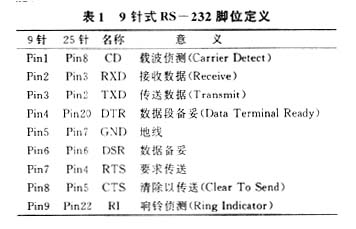 表1列出了25针和9针RS-232连接器的脚位功能。