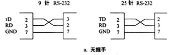 最简单的是用3根导线连接。连接交换RD和TD线,因此每个TD连接到对应的RD。如果设备不使用硬件握手,这样就可以完成通信。见图4(a)。