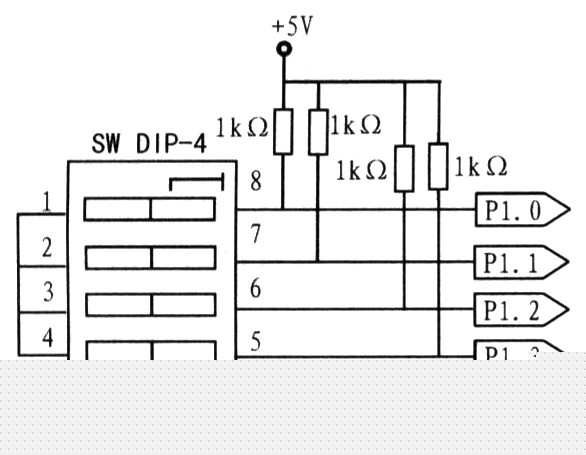 图3为单片机地址设置电路,单片机STC89C52的P1口的低4位用于设定本机地址,通过4位DIP开关的组合最多可设定16种地址。如当4位开关全部断开时,对应的本机地址是11 11。下位单片机在开始工作前需先设定自己的地址,这样,在开机自检时下位单机片就能获取本机地址。