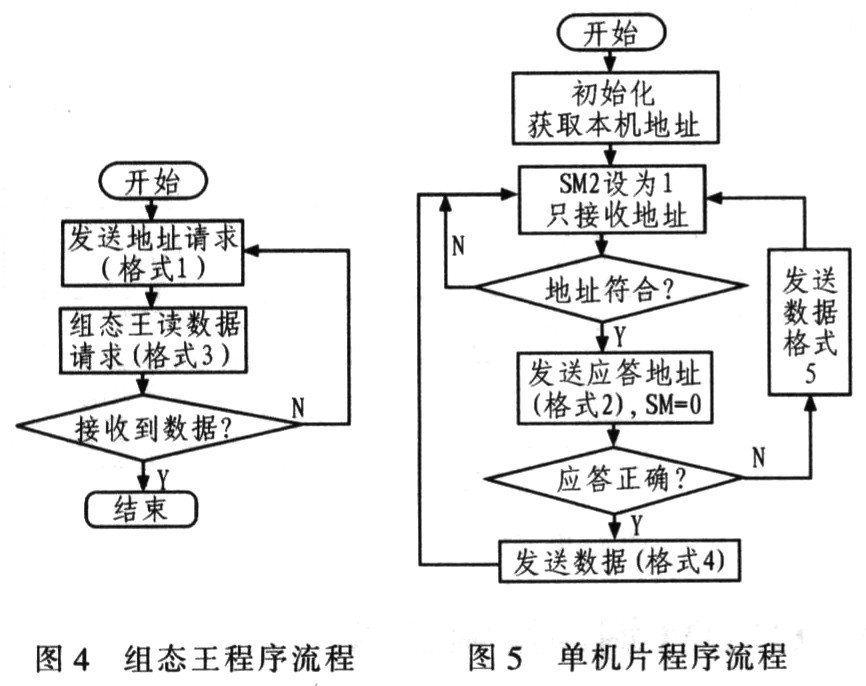 图4为组态王程序流程,图5为单片机通讯程序流程。80C51系列单片机多机通讯可归纳如下: