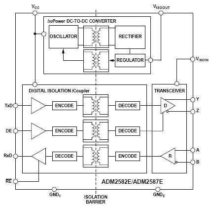 ADM2582E/ADM2587E-完全集成式隔离数据收发器