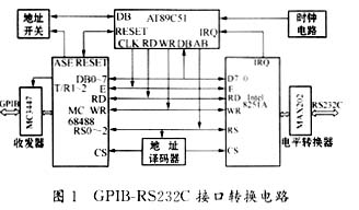 中心,用MC68488与GPIB系统母线相连,用INTEL8251A作为AT89C51同RS232C的接口,从而实现GPIB-RS232C接口转换。