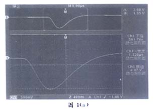 模拟探测器的脉冲信号经成形放大电路后其脉冲为负极性,其前沿下降时间约为562ns,脉冲宽度约为1.32μs,如图4(a)所示;再经过程控电路部分后,其前沿上升时间约为616ns,脉冲宽度约为1.36μs,如图4(b)所示(此时MAX551设为全1)。由于上升时间和时间常数的关系为:tr=2.2τ,且整个电路的时间常数与各部分电路时间常数的关系为:τ2=τ21+τ2 2,可以计算出程控电路的时间常数约为115ns,与理论值相符。由于程控电路部分的时间常数小于前级电路的时间常数,使得通过程控放大器后的信号波形的上升时间和脉冲宽度与原来相当,基本上保持了原电路的信号波形和平均计数率。改变MAX551的数字输入,其输