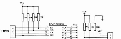 EPM7128是Altera公司生产的建立在多阵列结构基础上的高性能可编程逻辑器件,其内部具有符合IEEE1149.1标准的JTAG接口用于在线下载和修改程序,其内部具有2500个可使用门阵列、128个宏单元、8个逻辑阵列块,EPM7128SLC84具有68个用户可使用I/O接口。