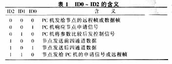 82C200发送和接收缓存器均为10个字节的寄存器,它们的第一字节是标识符的高8位,第二字节高3位为标识符的低三位ID2~ID0。这三位连同标识符的其他各位,以及紧接着的RTR位一起组成该报文的优先权。报文标识符低三位ID0~ID2在该系统中的含义见表1。?