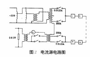 因为模拟电流源是为电流继电器提供所需电流的,而DL—20C系列电磁继电器有42种规格,最小电流为0.0125A,最大为200A,因为电流源测量范围大又需连续可调节,因此将电流源设计成基本量程12档,辅助量5档来完成26档量程的调节,使电流从0.0125A-200A连续可调。这26档覆盖了DL—20C系列电流继电器的42种规格,电路如图2所示,图中A表额定值为10A,电流互感器26个量程分别为0.0125A、0.025A、0.05A、0.1A、0.15A、0.2A、0.3A、0.5A、0.6A、lA、1.5A、2.0A、2.5A、3.0A、3.75A、5.0A、6.0A、7.5A、10.0A、12.5A、15A、20A、25A、50A、100A、200A。