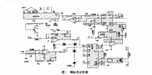 模拟测试电路是为测试继电器动作值极限误差、动作值一致性及返回系数而设计的。测试装置每次可对1—16台继电器参数进行测试。电路由模拟开关,交直流转换器、ADC转换器等构成。