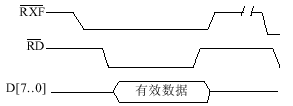 在设备端,基于万利的Insight SE-52仿真器进行编程。根据图4所示接收数据时序图,首先,须采样到信号为低,若为低,表明有接收到来自PC机的数据,允许单片机通过八位数据总线D0~D7读取数据。接着,通过信号由低到高的变化锁存数据(读入数据)。最后,延迟一段时间,重新开始下一字节的读取。软件流程如图5所示。发送数据过程,可根据图6所示发送数据时序图,同理编写发送数据的程序。设备程序可以在此基础上进一步开发,即用户根据自己的具体项目进行编程。
