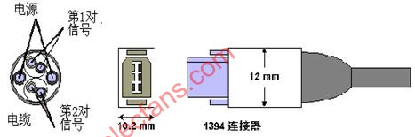 IEEE 1394规定的电缆是6芯线,电缆外层有一层总屏蔽。