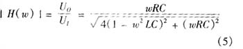 信号经L1、L2、C1、C2耦合至电力线上,C1、C2、L1、L2组成了带通滤波器,而低压电力线阻抗R具有时变特性。由此,可计算出C1、C2、L1、L2和低压电力线阻抗R组成的双口网络的电压转移函数: