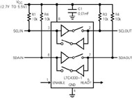 LTC4300-1允许用户在不破坏双总线系统的背板SDA和SCL信号情况下,将I/O卡插入到带电的背板中。另外,连接电路提供双向缓冲,隔离背板与卡电容。上升时间加速器电路加以提供帮助从而满足上升时间要求。