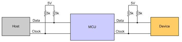 PS/2设备履行一种双向同步串行协议。换句话说,每次数据线上发送一位数据并且每在时钟线上发一个脉冲就被读入。设备可以发送数据到主机,而主机也可以发送数据到设备,但主机总是在总线上有优先权,它可以在任何时候抑制来自设备的通信,只需把时钟线电平拉低即可。