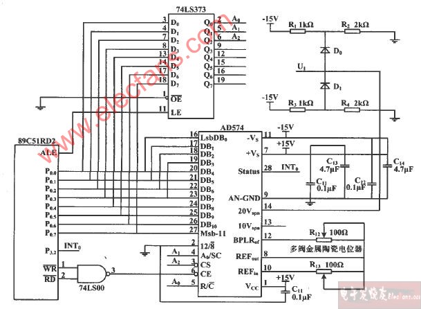 电路由AD574,74LS373,74LS00组成。