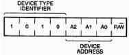 在起始条件之后,必须是器件的控制字节,其中高四位为器件类型识别符(不同的芯片类型有不同的定义,EEPROM一般应为1010),接着三位为片选,最后一位为读写位,当为1时为读操作,为0时为写操作。如图2所示。