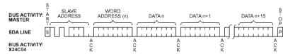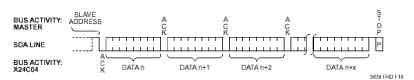 写操作分为字节写和页面写两种操作,对于页面写根据芯片的一次装载的字节不同有所不同。关于页面写的地址、应答和数据传送的时序参见图3。