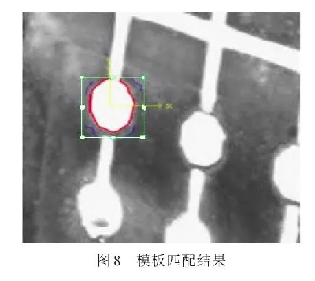 (2)监测系统。模具在生产过程中偶尔会出现异物等异常情况,如果采用人工监视,耗费人力物力,但如果不进行监视,有可能会损坏模具,影响工程进度。彭娟等用机器视觉技术对注射模监测系统进行了研究,采用几何轮廓信息模板匹配并配以报警器,解决了模具在生产过程中出现异物的问题。图8所示为采用几何轮廓信息特征作为标准模板的结果,其中由计算机模拟的型腔边缘轮廓(椭圆形)为标准模板的特征结果,在矩形方框中靠近4个角的4条曲线为潜在模板特征。