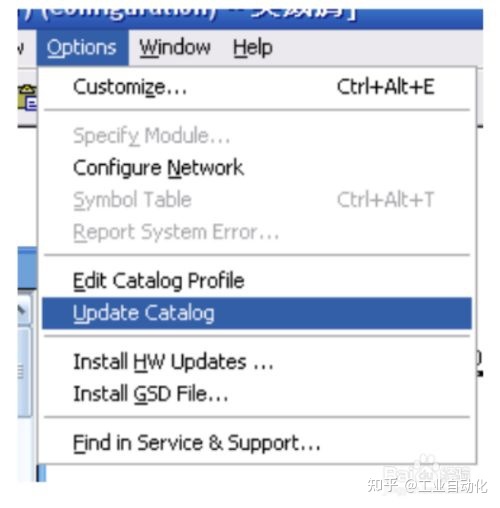 拷贝到 C 盘→Program Files→Siemens→Step7→S7DATA→GSD 文件夹中。打开 STEP7,建立新项目“仪表”。进入硬件配置界面,在 OPtiONS 中选择 UPDATE CATALOG,更新目录。