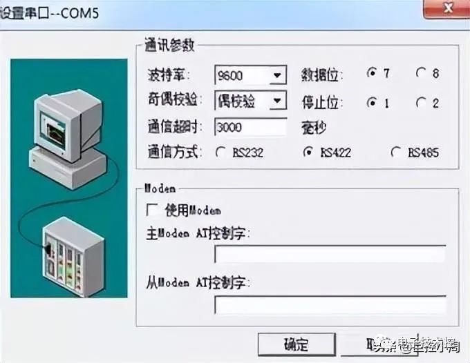 当PLC使用RS232与计算机上位机相连时,其参数设置为:波特率:9600;数据位长度:7;停止位长度:1;奇偶校验位:偶校验。