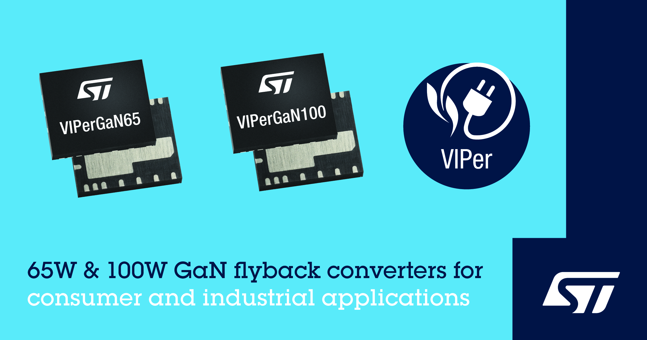 VIPerGaN100 和VIPerGaN65现已投产,都采用 5mm x 6mm QFN 封装。