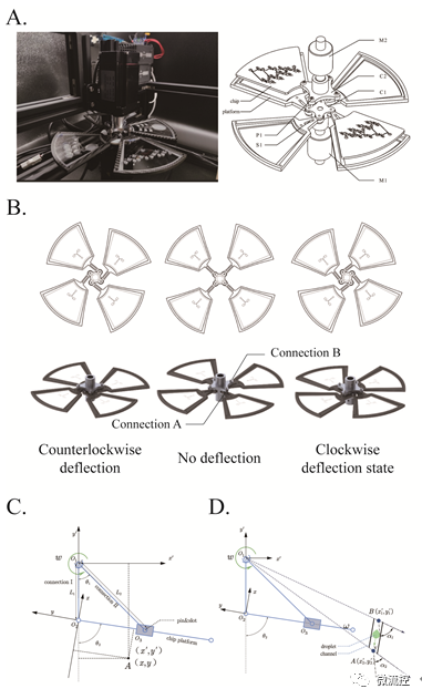 近期,清华大学深圳国际研究生院弥胜利课题组设计了一种新型可偏转的离心微流控系统(图1),通过控制伺服电机相位角差就能实现芯片工作平台的逆时针偏转、无偏转、顺时针偏转三种状态。其中逆时针偏转和顺时针偏转可通过改变相位角差大小实现位姿偏转角的控制,借由实现微流控芯片阀门的开关,实现传统微流控芯片的同等功能的同时,兼具更高的鲁棒性。这是因为离心产生的驱动力更易获得,所需硬件更易集成,芯片更易加工且可以兼容多种不同的制造材料。